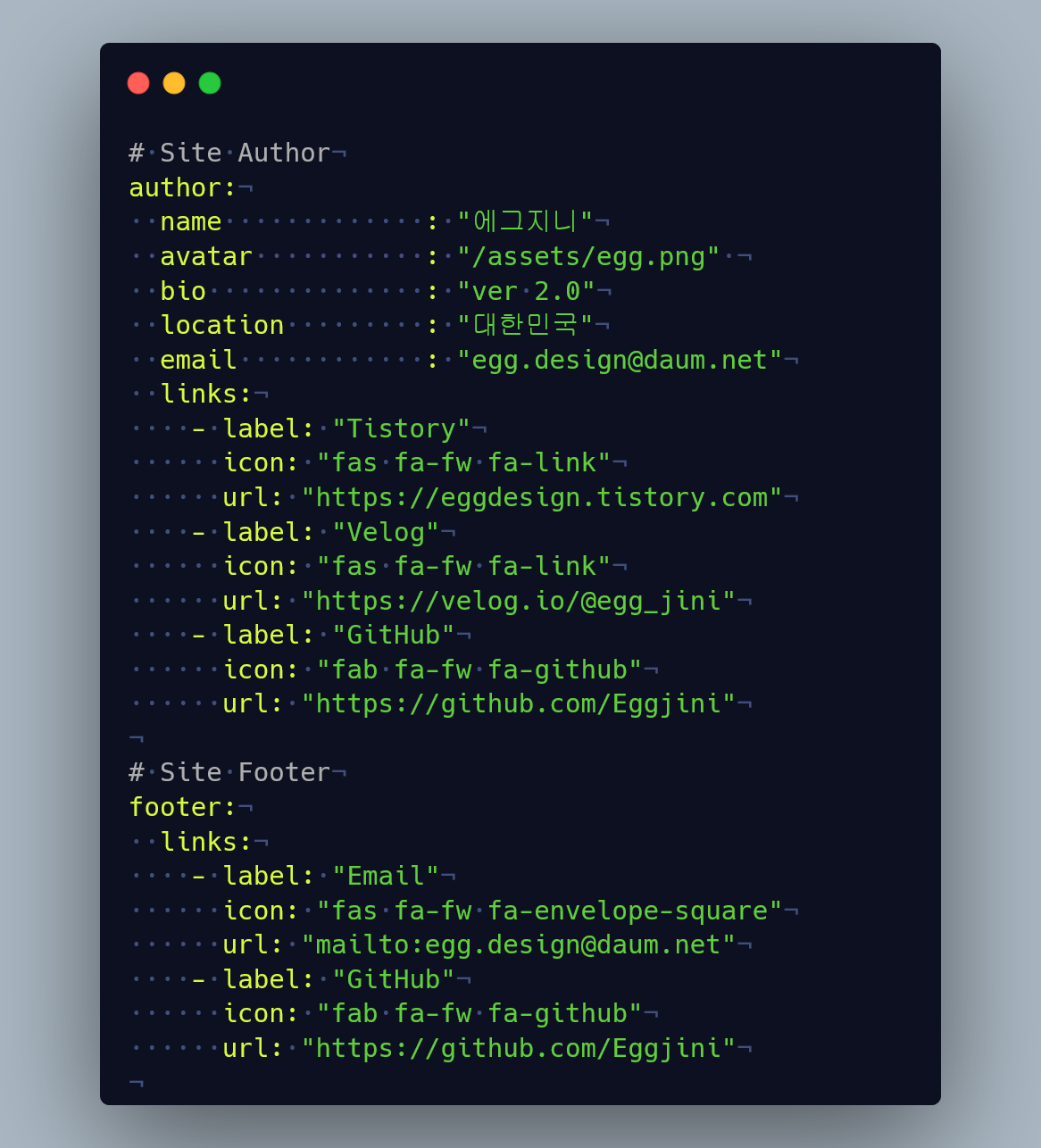 블로그에 대한 기본적인 정보들을 담고 있는 파일이예요.